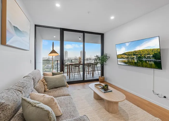 Das 2-Zimmer-Apartment The Haven - Brand New Riverview 2Br With Parking Pool Gym At Surfers Paradise Gold Coast befindet sich in Gold Coast, 16 Minuten zu Fuß von der Unendlichkeit entfernt, und bietet den Jacuzzi und eine Sauna. Diese 100 m² großen Apartments bietet eine Sonnenterrasse und liegt nur 550 Meter von der SkyPoint Observation Deck.